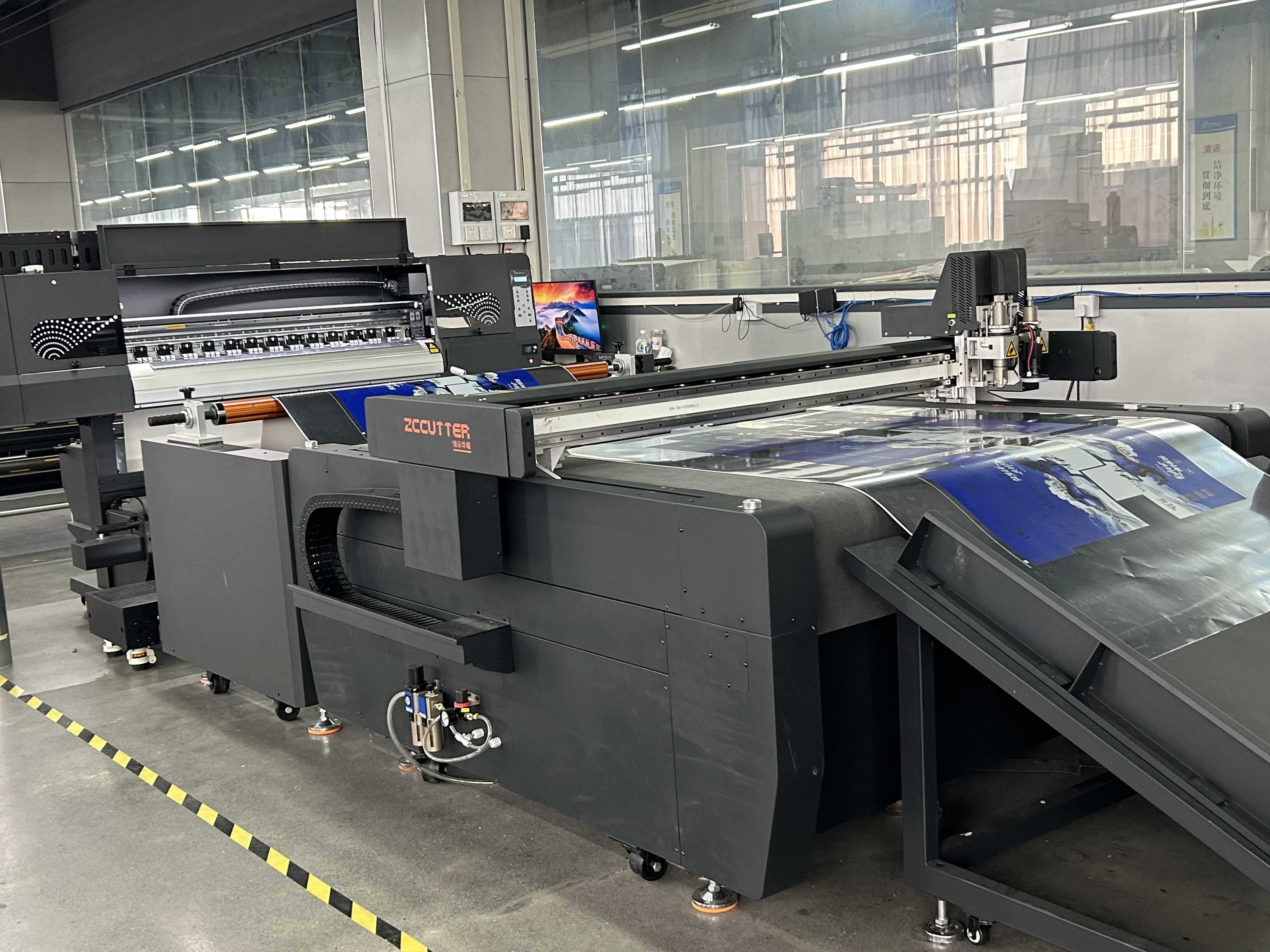 含1台切割机、1台卷对卷切割机、1台上纸切割机、1台高速数码印刷机、2台UV打样机、1台覆膜一体机、1套智能订单管理系统 |