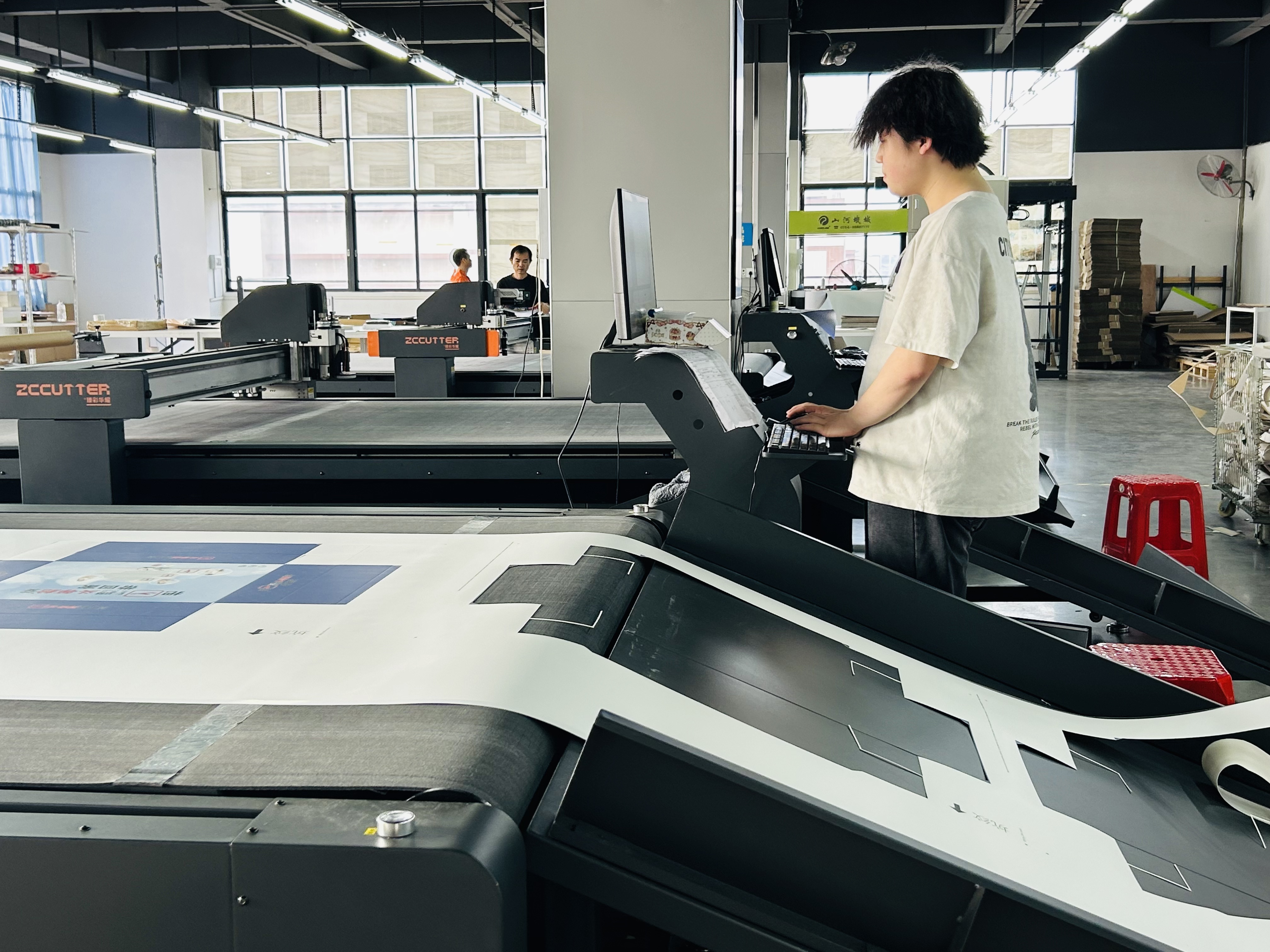 规模扩张(标杆打造):从方案二升级至方案三,新增 ZCRB2516 卷对卷切割机、ZCRB1814 飞达上纸切割机、BJD1304 四头高速机及第二台 UV 机,实现自动化、规模化生产,打造全品类数字工厂,承接全国订单。